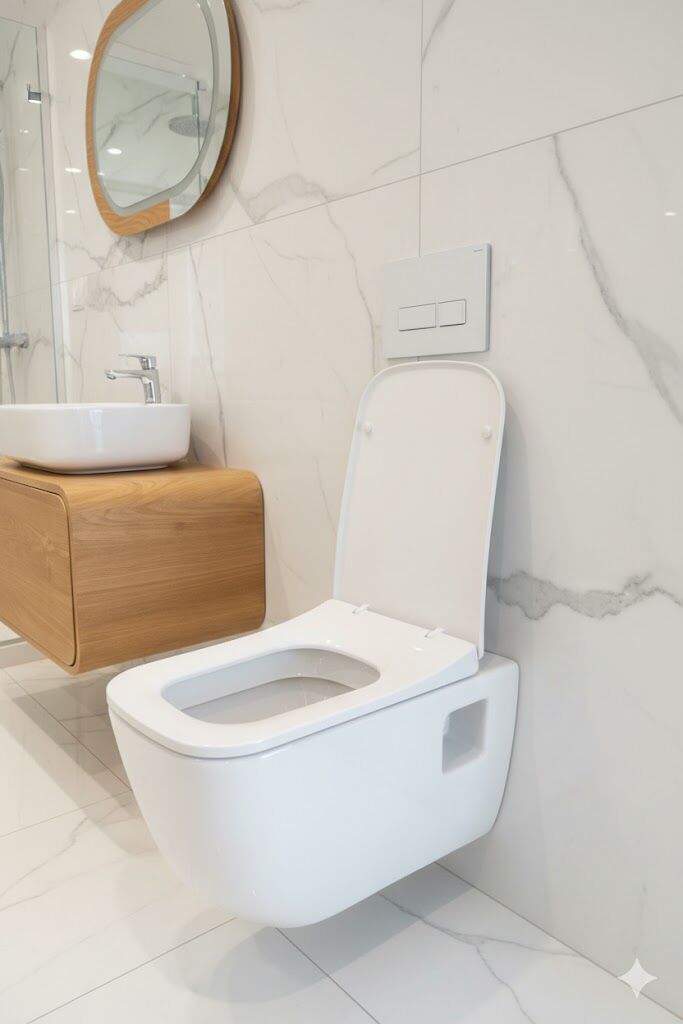 Aqua Asma Klozet, modern banyolar için şık, hijyenik ve yerden tasarruf sağlayan bir klozet çözümüdür. Duvara asılı montaj yapısı sayesinde zemin temizliği kolaylaşır ve banyoya ferah bir görünüm kazandırır.