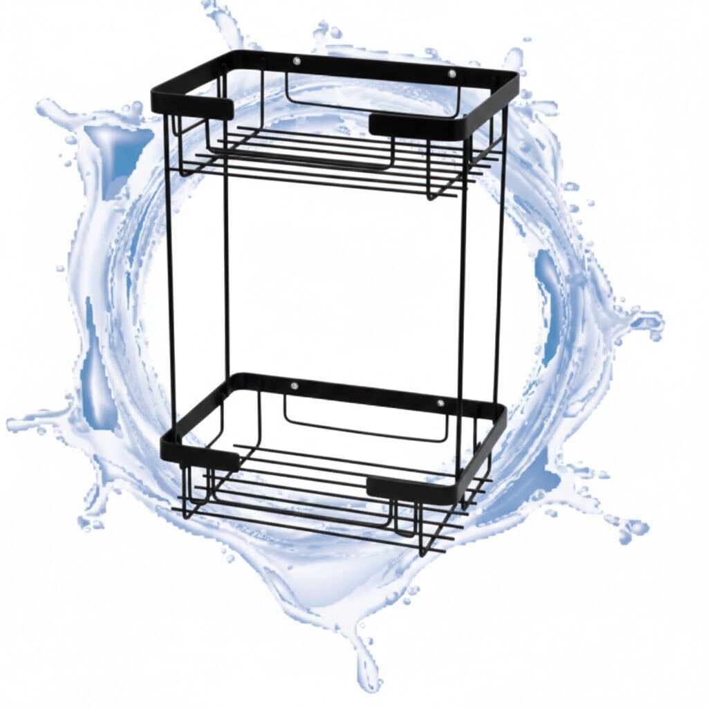 Mat siyah kaplama yüzeyi neme ve paslanmaya karşı dayanıklıdır. Dikdörtgen formu, daha geniş yerleştirme alanı sunarken ikili raf tasarımı şampuan, duş jeli ve sabun gibi ürünleri ayrı ayrı düzenleme imkânı sağlar. Minimal ve şık tasarımı ile modern banyolar için ideal bir tamamlayıcıdır.