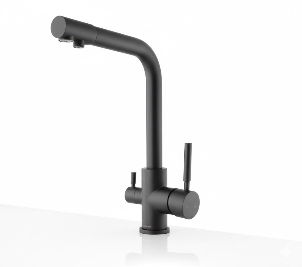 Mat siyah kaplaması, modern ve endüstriyel mutfak tasarımlarıyla mükemmel uyum sağlarken; yüksek kaliteli pirinç gövdesi uzun ömürlü ve dayanıklı kullanım sunar. Ergonomik kumanda yapısı ile konforlu kullanım sağlayan Enjoy Serisi arıtma bataryası, hem estetik hem de fonksiyonel bir çözümdür.