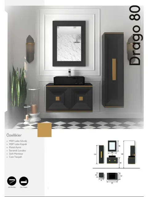 Evros Drago 80 cm Banyo Dolabı, geniş depolama alanı ve modern çizgileri ile banyonuza hem estetik hem de düzen katar. Dayanıklı ve neme karşı dirençli malzemeden üretilmiştir, uzun ömürlü kullanım sağlar. Alt dolap ve çekmeceleri ile banyo eşyalarınızı düzenli bir şekilde saklamanızı kolaylaştırır. Duvara monte edilebilir tasarımı ile temizlik ve kullanım rahatlığı sunar.