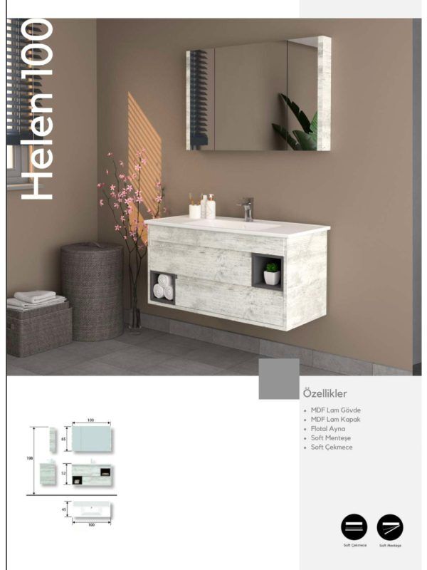 Evros Helen Banyo Dolabı, modern çizgileri ve kullanışlı yapısıyla banyonuza ferah ve düzenli bir görünüm kazandırır.