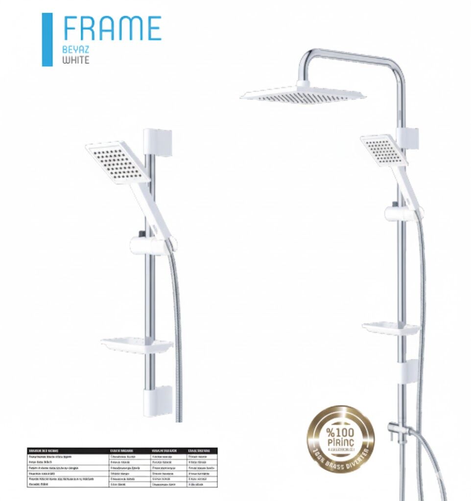 Frame Beyaz Duş Sistemi, sade beyaz rengi ve modern frame tasarımıyla banyolara ferah ve şık bir görünüm kazandırır. Zamansız tasarımı sayesinde hem modern hem de klasik banyo dekorasyonlarıyla uyum sağlar.