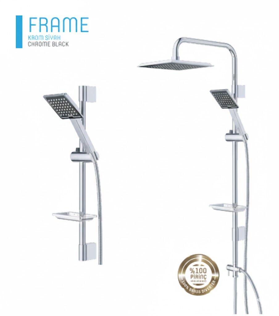 Frame Krom Siyah Duş Sistemi, parlak krom gövde ile siyah detayların modern uyumunu bir araya getirerek banyolara güçlü ve şık bir karakter kazandırır. Minimal frame tasarımı sayesinde çağdaş ve lüks banyo konseptleriyle kusursuz uyum sağlar.