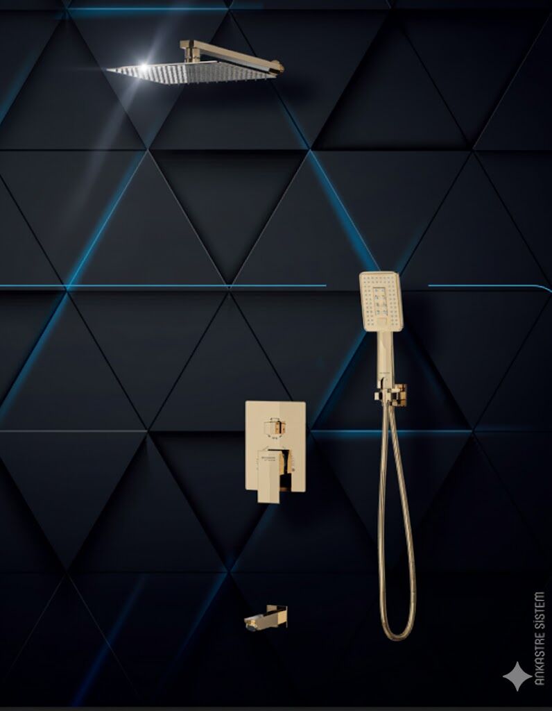 Gold Ankastre Duş Sistemi, duvar içine gizlenen yapısı sayesinde banyolarda sade, modern ve lüks bir görünüm sunar. Gold kaplaması banyoya prestij katarken, dayanıklı pirinç gövdesi uzun ömürlü ve güvenli kullanım sağlar.