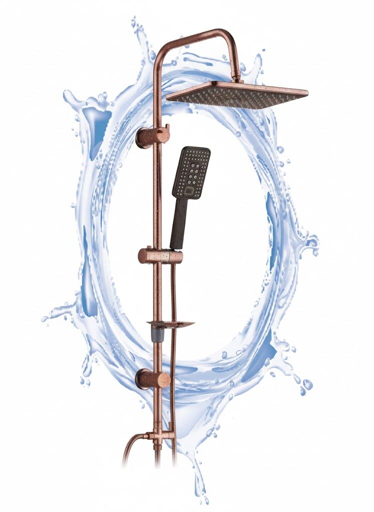 Hybrid Bakır Tepe Duş Seti, bakır kaplamanın sıcak ve lüks görünümünü modern tasarım anlayışıyla birleştirerek banyolara estetik bir dokunuş kazandırır. Dayanıklı pirinç yönlendirici mekanizması sayesinde uzun ömürlü ve güvenilir kullanım sunar.