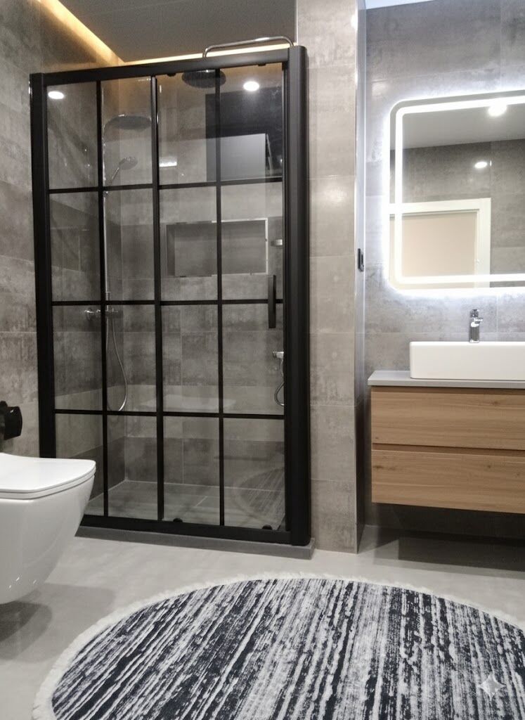İki Duvar Arası Siyah Profilli Siyah Karolajlı Cam Duşakabin, endüstriyel ve modern banyo tasarımlarına güçlü bir karakter kazandırır. İki duvar arasına uygulanabilen yapısı sayesinde alanı verimli kullanır ve banyolara net, şık bir görünüm sunar.