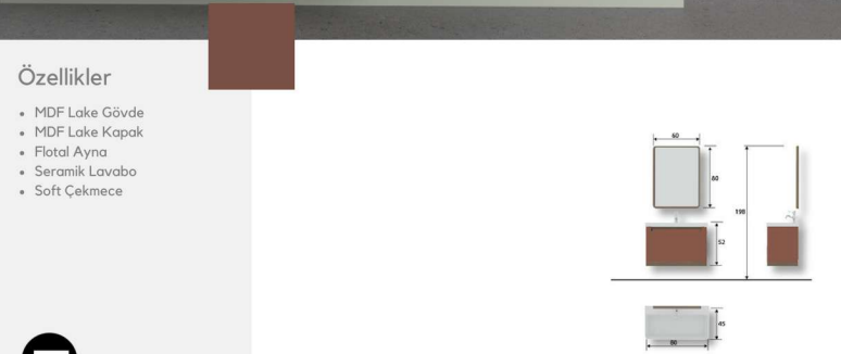 80 cm genişliği, günlük kullanım için yeterli alan sunarken, lavabolu set yapısı ile pratik ve düzenli bir banyo deneyimi sağlar.