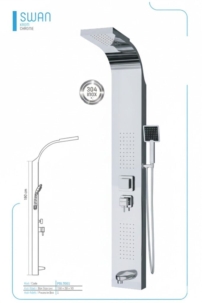 Parlak krom kaplaması modern bir görünüm sunarken, dayanıklı yapısı uzun ömürlü kullanım sağlar. Robot duş sistemi; fonksiyonel tasarımı, ayarlanabilir yönlendirme özelliği ve estetik görünümü ile hem konfor hem de şıklığı bir arada sunar.