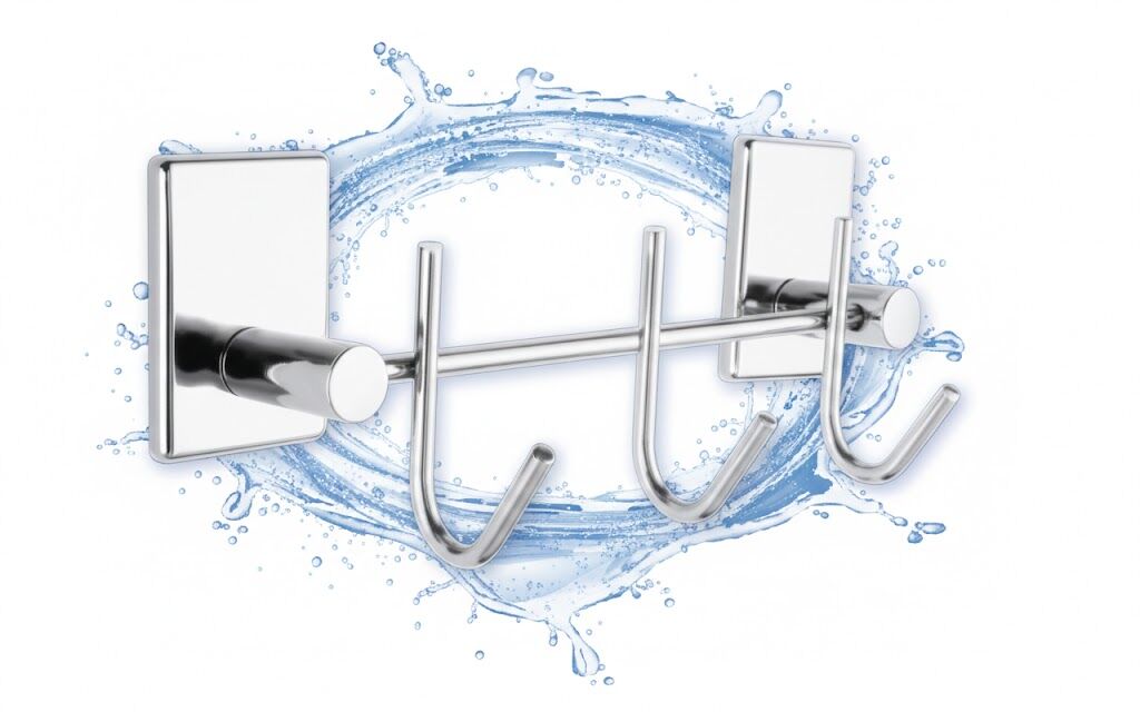 Krom Üçlü Askılık Yapışkanlı Banyo Askısı, delme ve vida gerektirmeyen pratik montaj sistemi sayesinde banyolarda düzenli ve şık bir kullanım sunar. Güçlü yapışkan teknolojisi ile duvara sağlam şekilde tutunur ve uzun süreli kullanım sağlar.