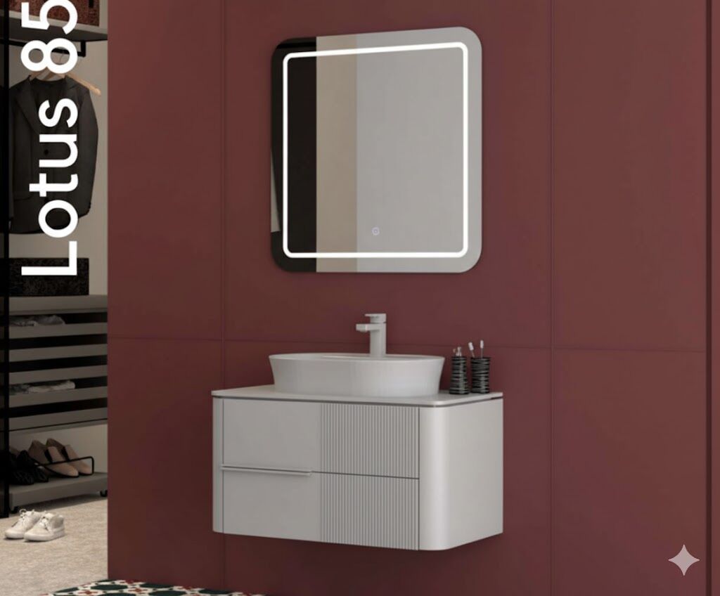 Lotus 85 cm Lavabolu Banyo Dolabı, dengeli ölçüsü ve zarif tasarımıyla orta ölçekli banyolar için ideal bir çözümdür.