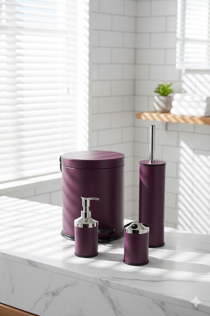 4’lü mor banyo seti, banyosuna modern ve dikkat çekici bir stil kazandırmak isteyenler için tasarlanmıştır. Mor rengiyle dekorasyona canlılık katarken, dayanıklı yapısı sayesinde uzun ömürlü kullanım sunar. Günlük kullanımda ihtiyaç duyulan temel banyo aksesuarlarını tek set halinde bir araya getirir.