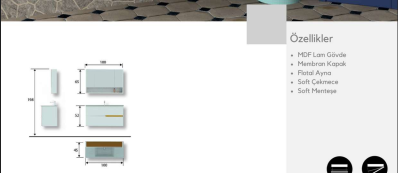 100 cm genişliği sayesinde ferah bir kullanım alanı sunarken, lavabolu set yapısı ile banyonuzda düzen ve konforu bir araya getirir.