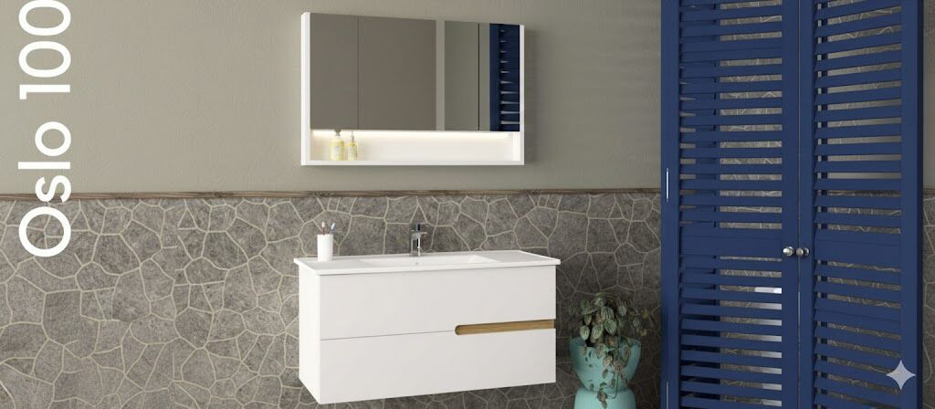 Oslo 100 cm Lavabolu Banyo Dolabı, geniş ölçüsü ve modern çizgileriyle büyük banyolar için şık ve fonksiyonel bir çözümdür.
