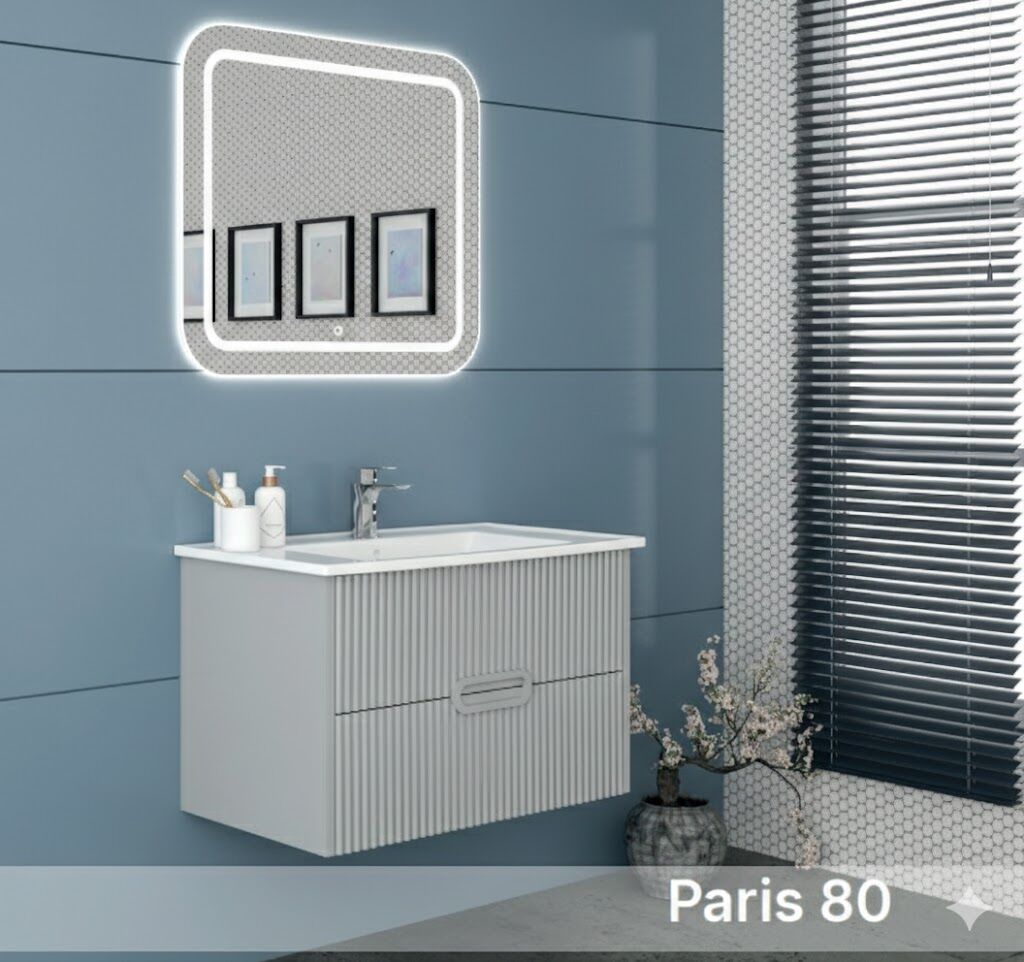 Paris 100 cm Lavabolu Banyo Dolabı, zarif çizgileri ve geniş ölçüsüyle orta ve büyük banyolar için ideal bir çözümdür.