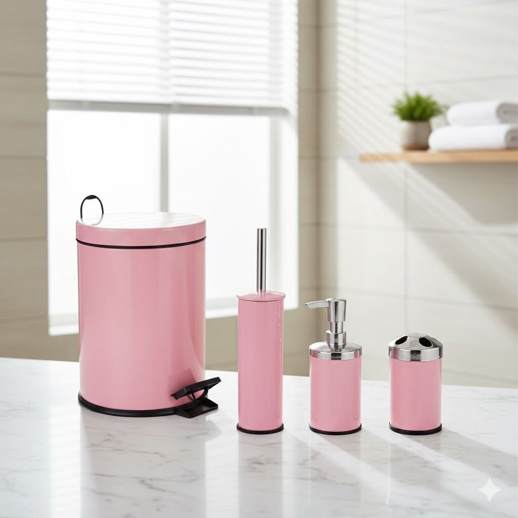 4’lü pembe banyo seti, banyosuna soft ve modern bir dokunuş katmak isteyenler için ideal bir settir. Şık pembe rengi ile ferah ve estetik bir görünüm sunarken, dayanıklı yapısı sayesinde uzun süreli kullanım sağlar. Günlük ihtiyaçları karşılayan temel banyo aksesuarlarını tek bir set içinde bir araya getirir.