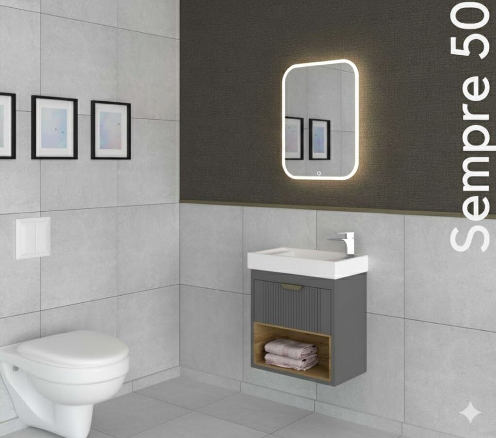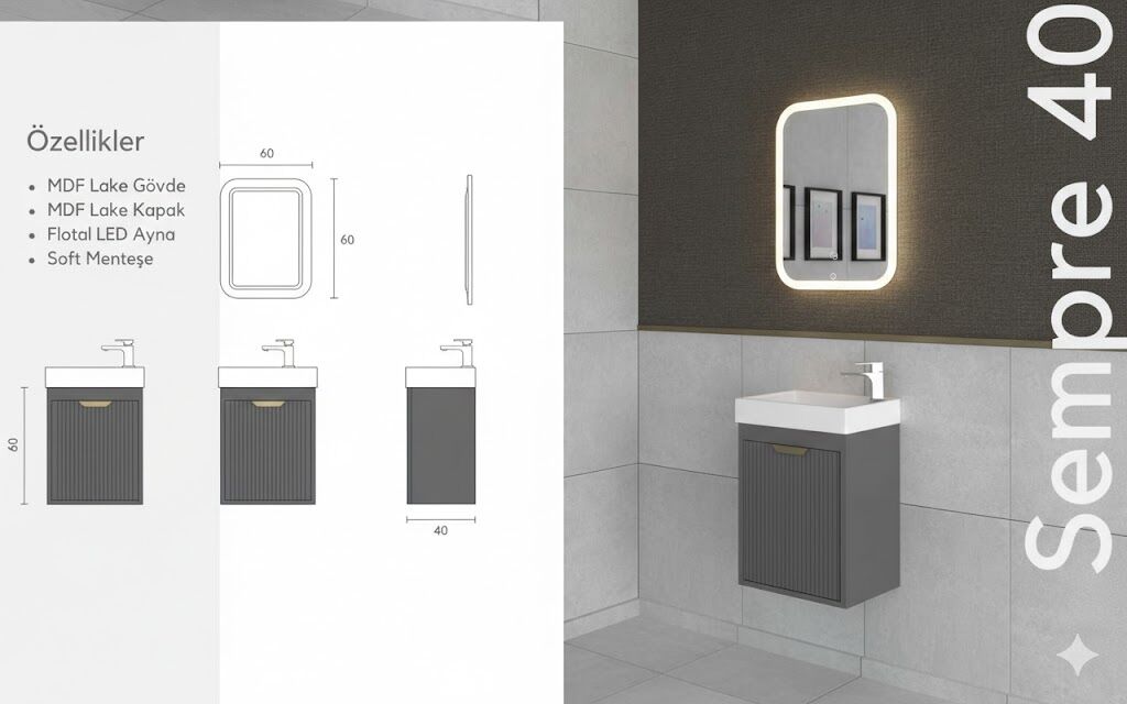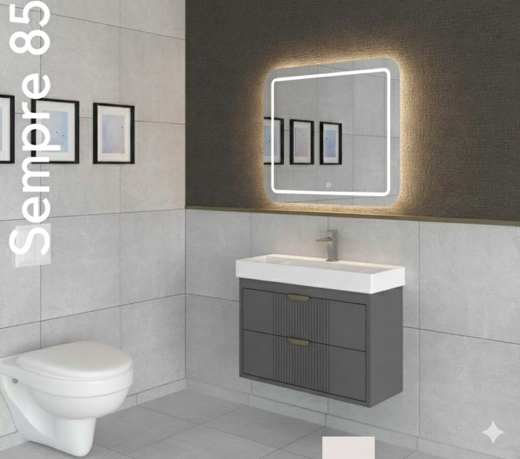 Sempre 85 cm Lavabolu Banyo Dolabı, dengeli ölçüsü ve modern tasarımıyla orta ölçekli banyolar için estetik ve fonksiyonel bir çözümdür.
