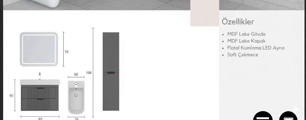 85 cm genişliği sayesinde konforlu bir kullanım alanı sunarken, lavabolu set yapısı ile banyonuzda düzen ve şıklığı bir araya getirir.