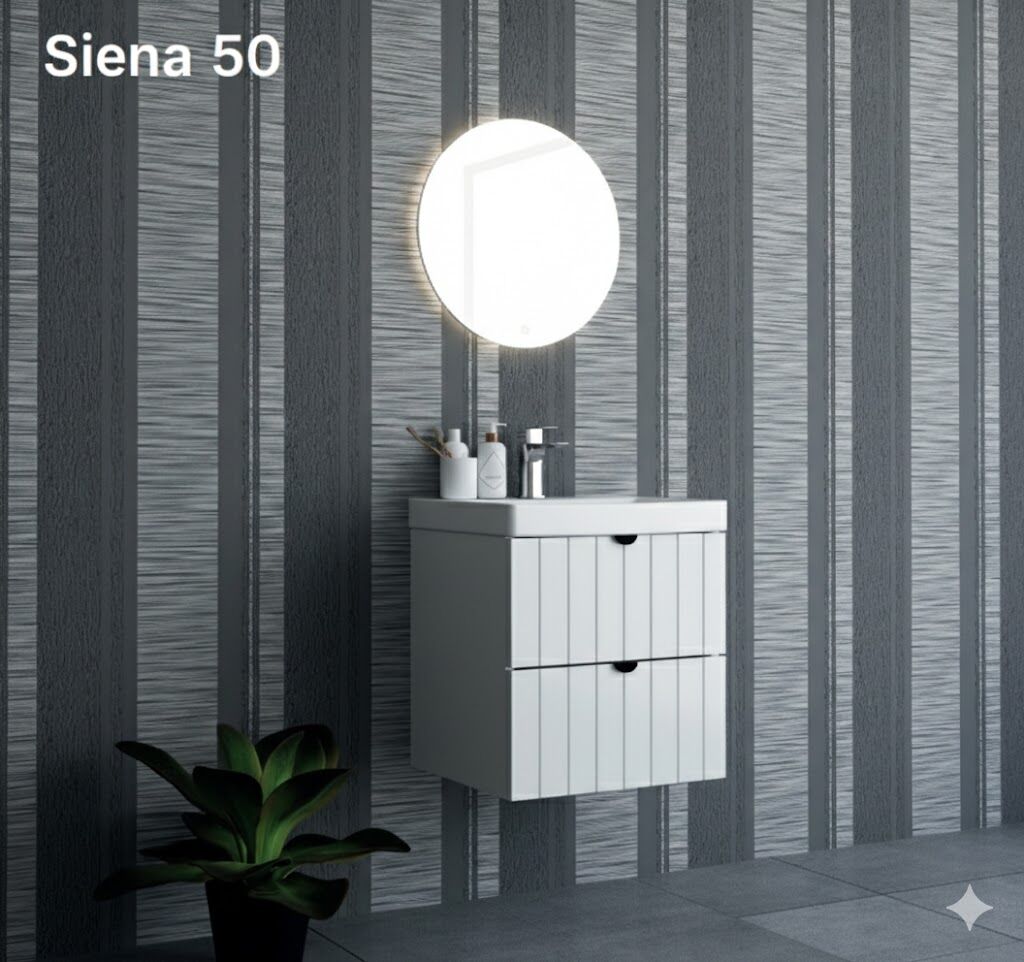 Siena 60 cm Lavabolu Banyo Dolabı, kompakt ölçüsü ve zarif tasarımıyla küçük banyolar için ideal bir çözümdür.