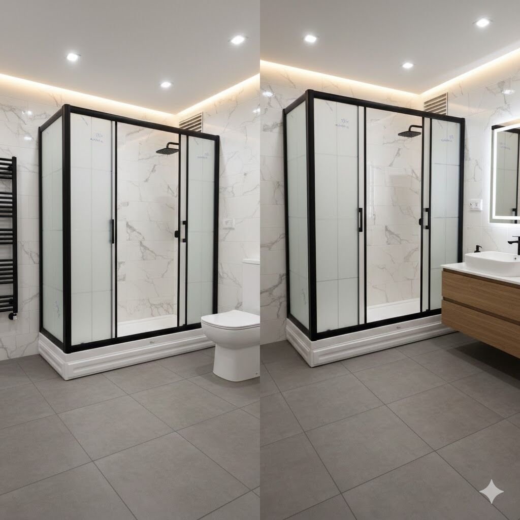 Mat siyah profil yapısı, neme, buhara ve korozyona karşı dayanıklıdır. Sağlam menteşe sistemi ve temperli cam kalitesi ile uzun ömürlü, güvenli ve konforlu kullanım sunar. Modern banyolar, loft tarzı alanlar, oteller ve rezidans projeleri için ideal bir duşakabin çözümüdür.
