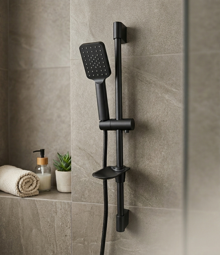 Banyonuzda modern ve şık bir dokunuş arıyorsanız siyah sürgülü duş seti tam size göre! Minimal tasarımı ve mat siyah rengi ile her banyo dekorasyonuna uyum sağlar. Ayarlanabilir sürgülü ray sistemi sayesinde farklı boy kullanıcılar için konforlu kullanım sunar.