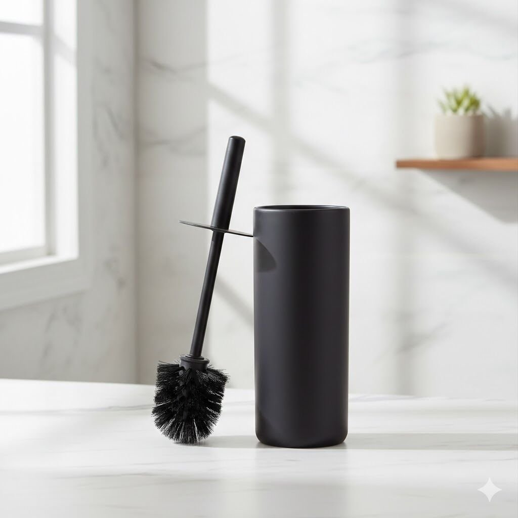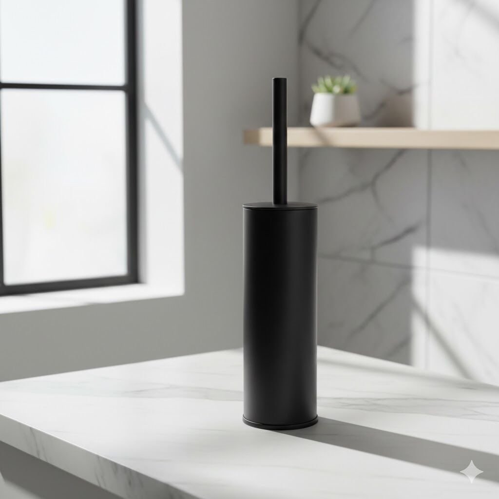 Siyah WC Fırçası, modern banyolar için sade ve güçlü bir tasarım sunar. Mat siyah kaplaması dekorasyona şıklık katarken, neme ve günlük kullanıma dayanıklı yapısı uzun ömürlü kullanım sağlar. Hijyenik haznesi ve ergonomik sapı ile pratik ve konforlu temizlik sunar.