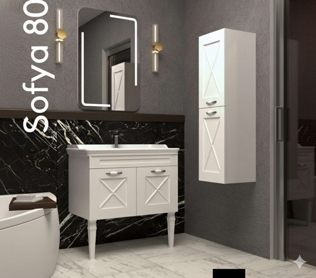 Sofya 80 cm Lavabolu Banyo Dolabı, sade ve modern çizgileriyle orta ölçekli banyolar için estetik ve fonksiyonel bir çözümdür.