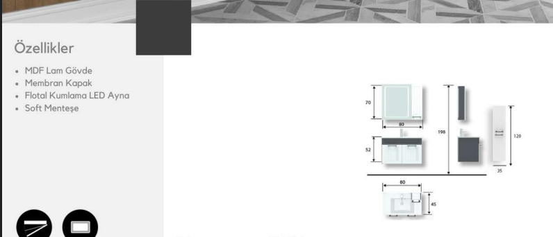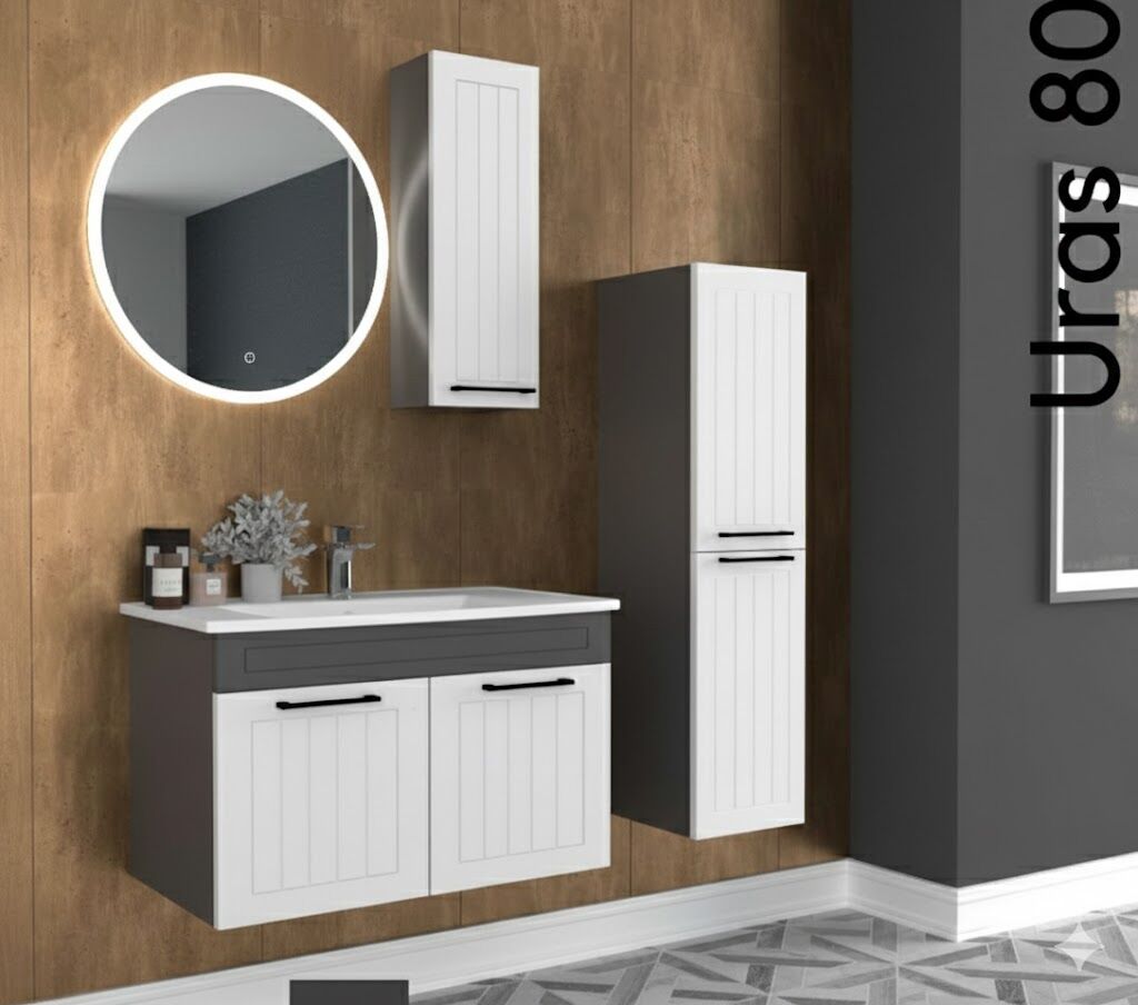 Uras 80 cm Lavabolu Banyo Dolabı, sağlam yapısı ve modern çizgileriyle orta ölçekli banyolar için fonksiyonel ve estetik bir çözümdür.