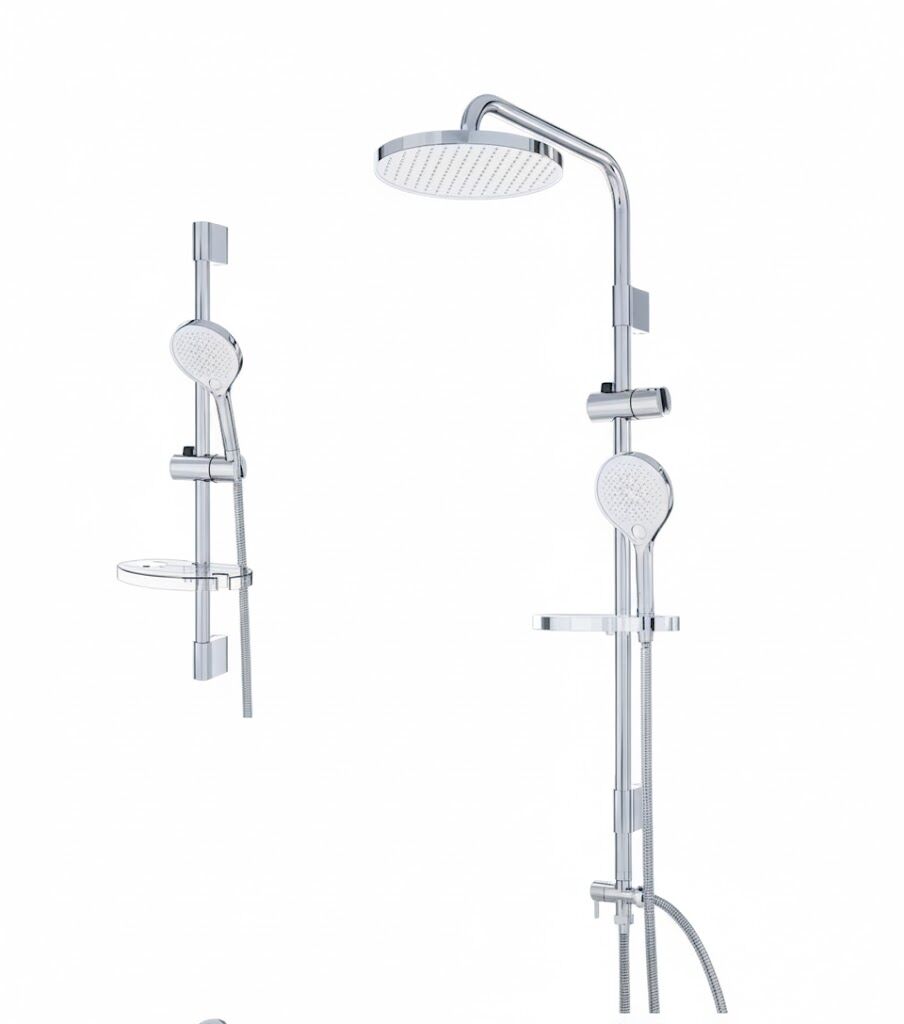 Vario Oval Beyaz Krom Duş Sistemi, oval formdaki tepe duşu ve beyaz–krom renk uyumu ile banyolara zarif ve modern bir görünüm kazandırır.